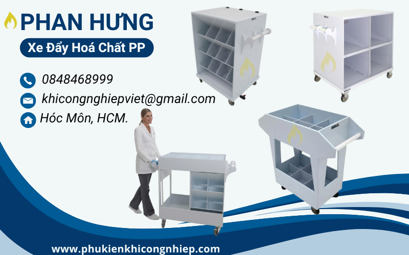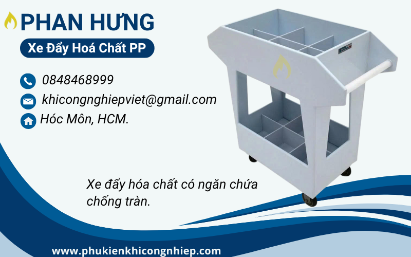 Trong môi trường sản xuất công nghiệp, đặc biệt là các nhà máy hóa chất, xi mạ, dược phẩm và xử lý nước thải, nhu cầu vận chuyển hóa chất an toàn luôn đặt lên hàng đầu. Xe đẩy vận chuyển hoá chất ăn mòn bằng PP (Polypropylene) đang trở thành thiết bị tối ưu nhờ khả năng chống ăn mòn vượt trội, độ bền cao và giá thành hợp lý.