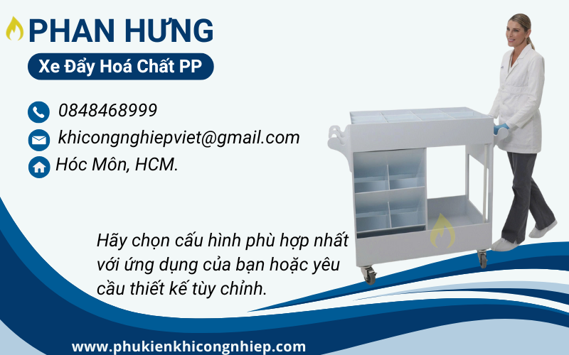 Xe đẩy vận chuyển hoá chất ăn mòn bằng PP là giải pháp an toàn – bền bỉ – tiết kiệm, phù hợp cho mọi doanh nghiệp cần xử lý và vận chuyển hóa chất nguy hiểm. Đây là thiết bị đáng đầu tư để bảo vệ người lao động, nâng cao hiệu quả sản xuất và giảm thiểu rủi ro trong vận hành.